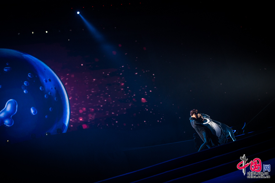25日晚七点半,2016季水立方版《鸟巢·吸引》演出正式拉开帷幕,千余名观众共同见证了首演。 中国网记者 牛博 摄