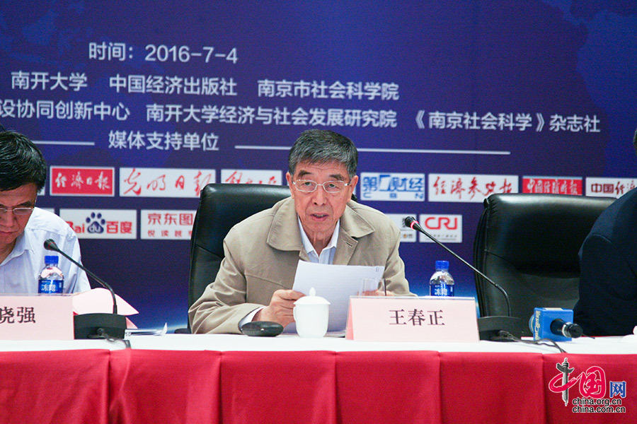 7月4日,由南开大学、中国经济出版社、南京市社会科学院共同主办的“中国经济高端论坛暨陈文玲著作发布会”在京召开。图为中国国际经济交流中心咨询委员会主任王春正。中国网记者 伦晓璇 摄