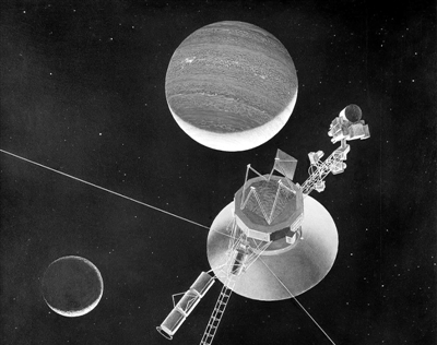1977年8月和9月,“旅行者1”号、“旅行者2”号发射升空,飞奔木星,而后前往土星。1979年3月7日,“旅行者1”号首次发现了木星环。“旅行者2”号在1979年7月9日最接近木星,在距离木星云顶57万公里处掠过。这次拜访新发现了几个环绕木星的环,并拍摄了一些显示木卫一火山活动的照片。