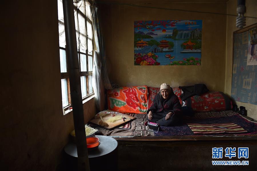 山西省武乡县故城镇权店村郝菊香老人坐在炕上休息(2016年3月9日摄)。新华社记者 詹彦 摄