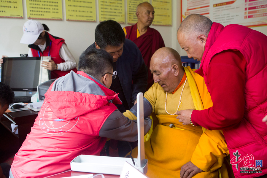 专家医师们通过“莲花会诊”公益会诊平台为长青春科尔寺的三位僧人会诊。董宁摄影