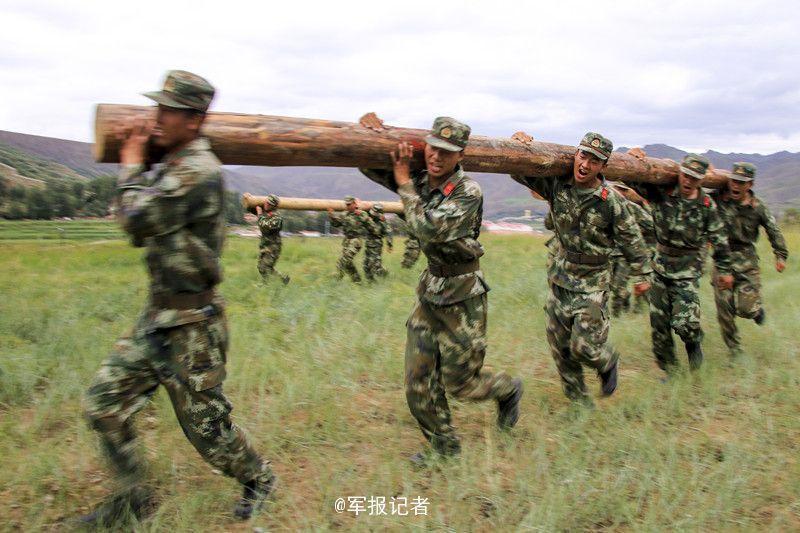 挑战极限!官兵海拔2500米大吼扛举圆木[组图]