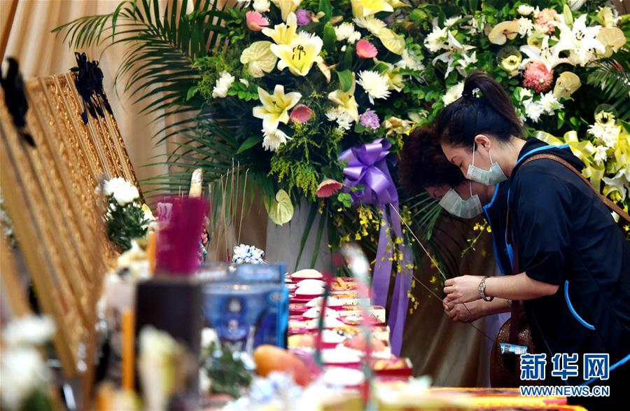 7月25日,大陆赴台旅行团严重车祸遇难者“头七”法会在桃园中坜殡仪馆怀源厅举行。遇难者家属分别到遇难者灵前上香、鞠躬,跟随法师诵经悼念亲人。新华社记者宋振平 摄
