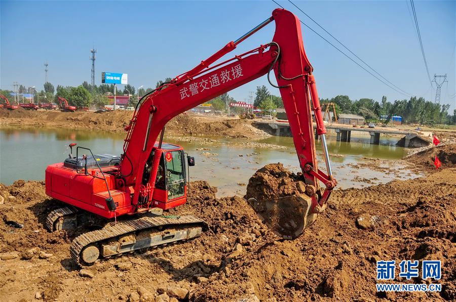 7月26日,武警交通七支队战士操作机械设备在七里河加固堤岸。 7月19日至21日,河北省邢台市发生连续强降雨,部分地区出现洪涝灾害。灾情发生后,武警交通七支队232名官兵携53台(套)机械装备驰援邢台灾区,开展抗洪抢险救援作业。目前,已完成河道清淤9500立方米,堤坝加固、挖填土石方8000立方米。新华社记者朱旭东 摄