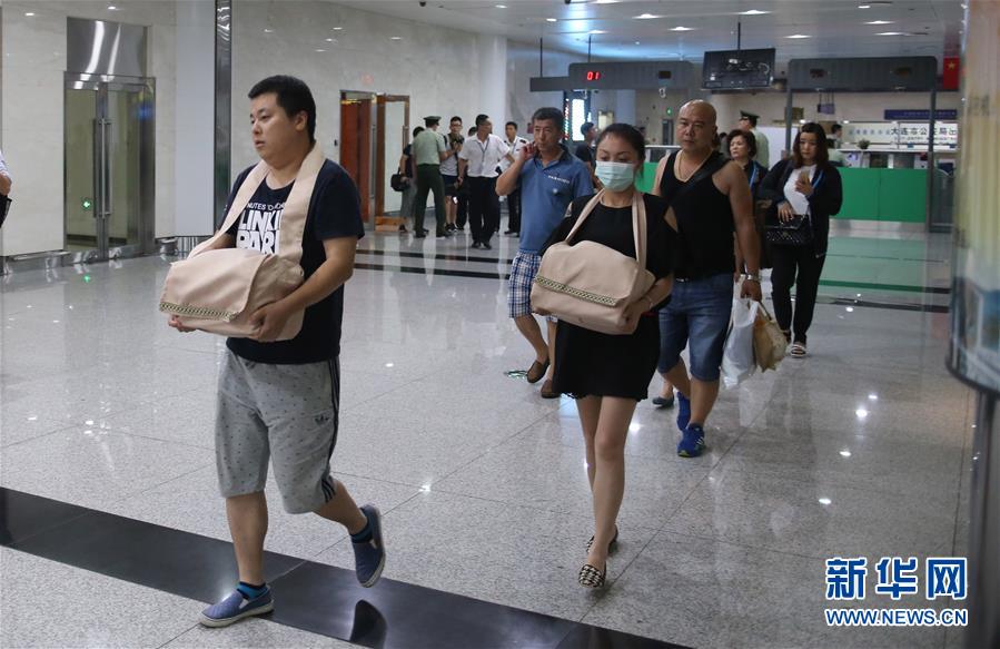 7月26日,在大连周水子机场,手捧遇难者骨灰盒的家属走出边防检查站。当晚,大陆赴台旅行团严重车祸遇难者家属51人,带着23位亲人的骨灰搭乘台湾立荣航空B7106航班从台北返抵大连。