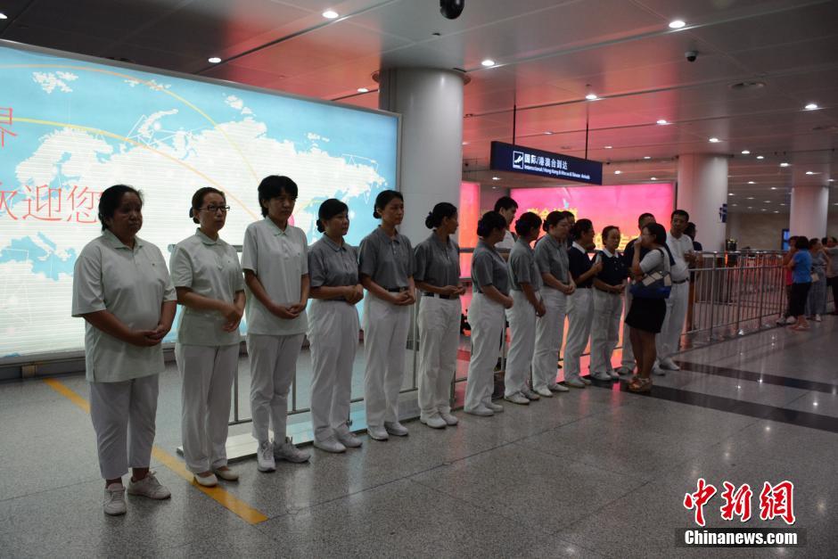 7月26日晚7时20分,51名台湾“7·19”游览车事故罹难者家属代表携23位亲人骨灰从台湾返回辽宁大连。图为台湾慈济慈善基金会大连联络处工作人员等候罹难者家属。中新社记者 杨毅 摄