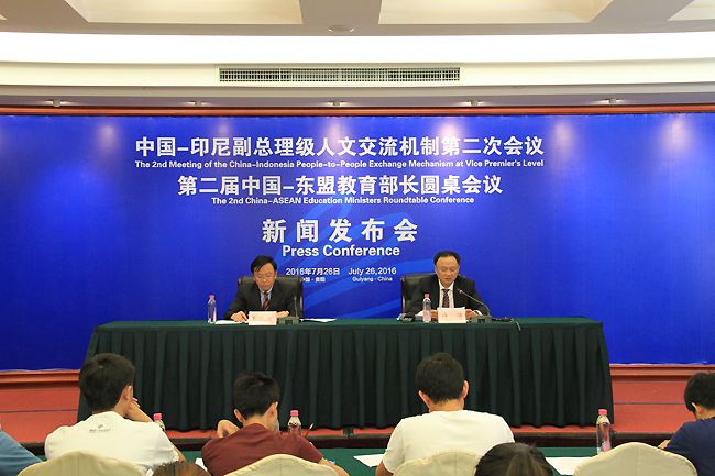 7月26日,中国—印尼副总理级人文交流机制第二次会议、第二届中国—东盟教育部长圆桌会议新闻发布会在贵阳市召开。