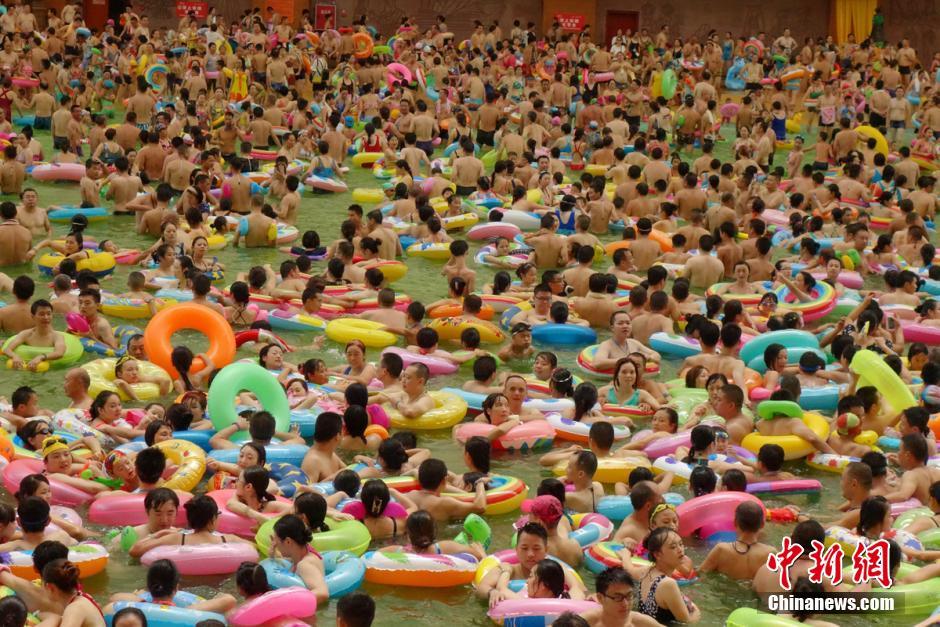 四川游客戏水避暑 挤满泳池密密麻麻[组图]