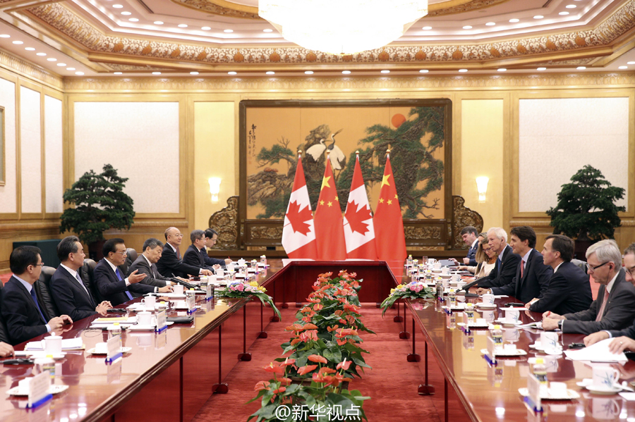 李克强总理31日在人民大会堂东门外广场举行仪式,欢迎来华正式访问并出席G20杭州峰会的加拿大总理特鲁多。会谈中,双方决定建立中加总理年度对话机制,一致同意本着相互尊重、平等相待的精神,抓住机遇,深挖潜力,开创中加关系和各领域务实合作的新时代。