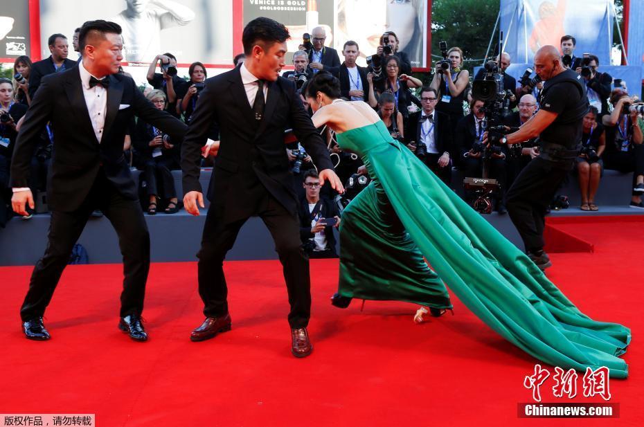大写的尴尬 中国女星威尼斯走红毯跪地摔倒[组图]