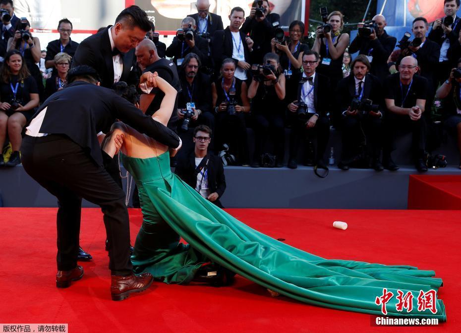大写的尴尬 中国女星威尼斯走红毯跪地摔倒[组图]