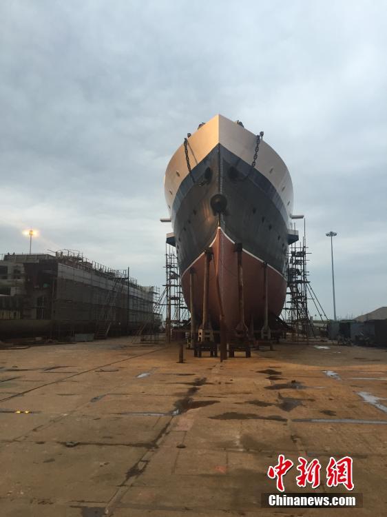 甲午战争中与日军吉野舰对战时爆炸沉没的致远舰,10月1日以纪念舰的方式重见天日。9月30日,“致远”纪念舰在辽宁省丹东港正式下水,并于10月1日被拖航至丹东浪头港与公众见面。图为 9月27日,外观建造完毕的甲午战舰“致远”纪念舰在丹东港码头。中新社记者 张颖 摄
