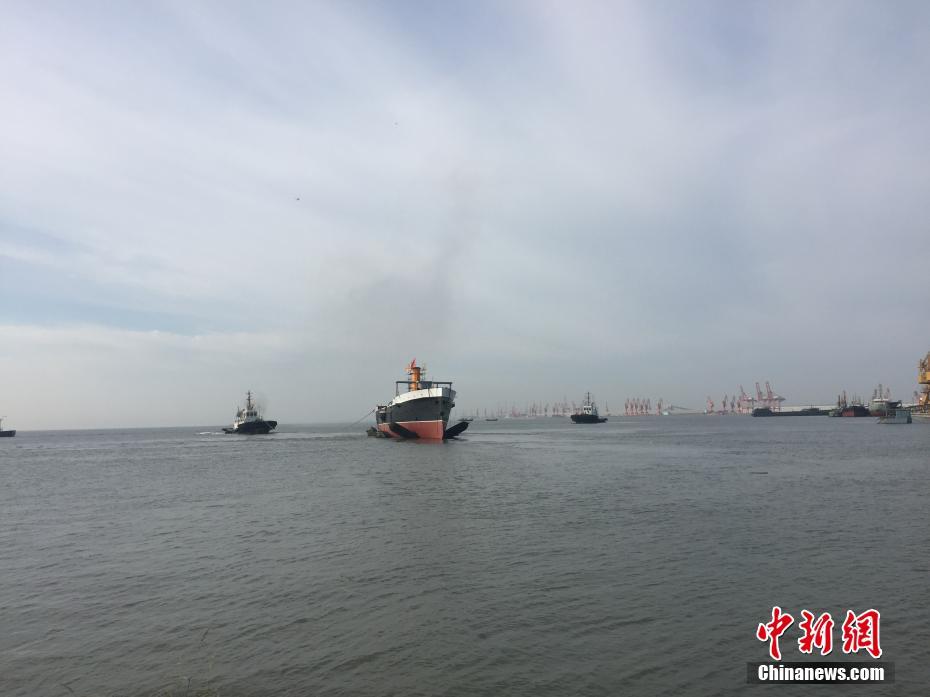 历经两年的复制与建造后,甲午战舰“致远”纪念舰9月30日在丹东港成功下水,并于10月1日停泊在丹东浪头港。 中新社记者 张颖摄