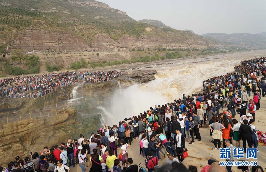 10月4日,游客在黄河壶口瀑布参观游玩。 新华社发 梁志强 摄图片来源:新华网