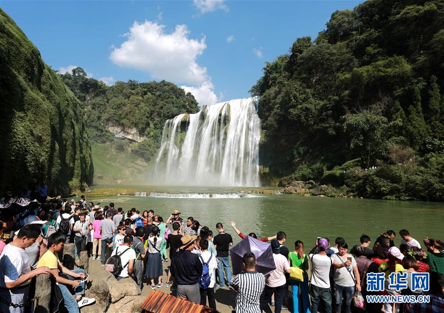 10月4日,游客在贵州安顺黄果树大瀑布景区游览。国庆长假第四天,各地景区持续迎来客流高峰。 新华社发 卢维 摄图片来源:新华网