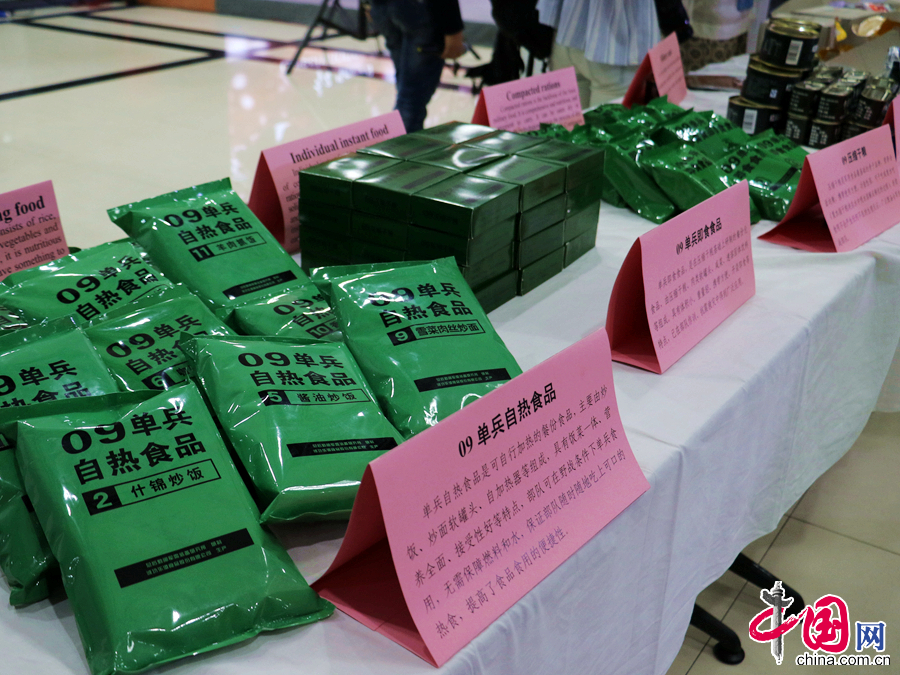 在演习基地举行的中德军用食品展上,种类多样的军用食品不仅让众人大开眼界,营养与口味兼具的制式口粮更好地提升了食物品质,颠覆了以往军用食品只是简单充饥的作用。