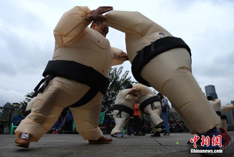 重庆青年上班族玩趣味“相扑”大战释压[组图]