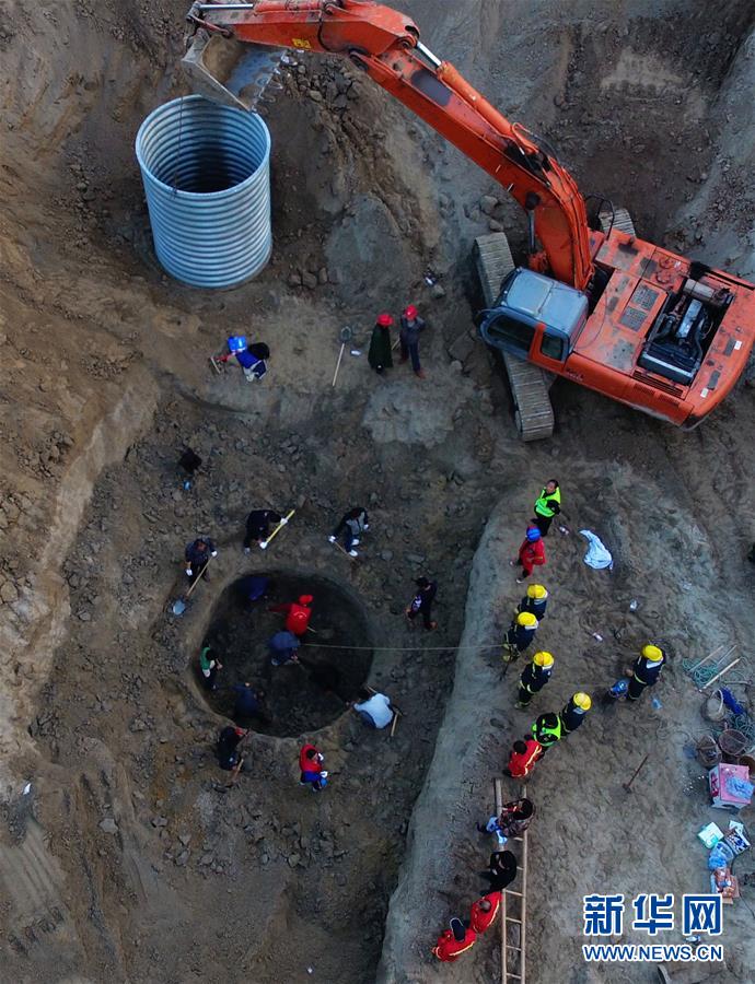 11月8日,救援人员在现场开展救援工作。 11月6日上午,河北保定蠡县中孟尝村一男童不慎掉落约40米深的枯井,目前有80台挖掘机在事故现场持续开展救援工作。新华社记者王晓摄