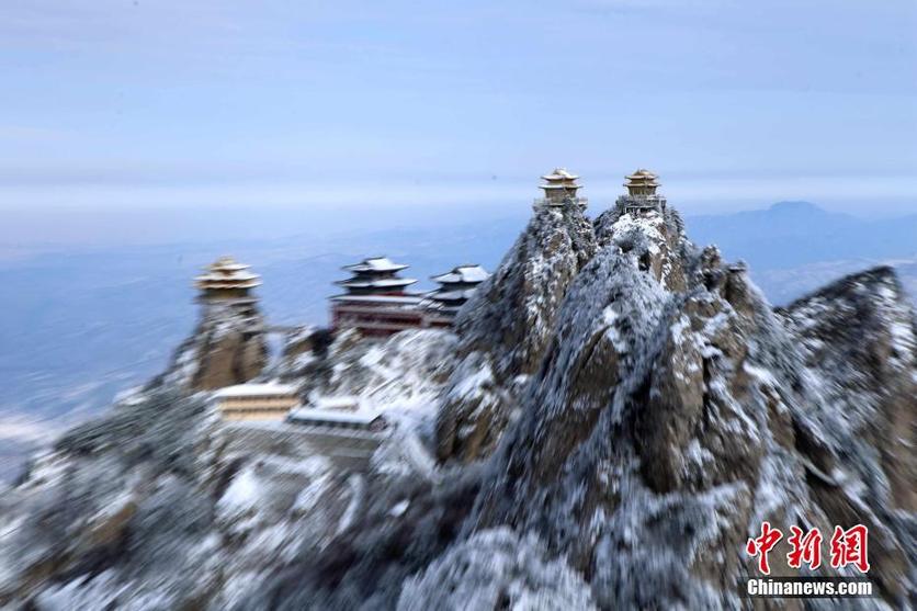河南老君山降雪 两千米绝壁道观一夜白头美似画卷[组图]