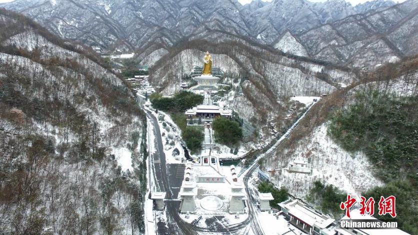 河南老君山降雪 两千米绝壁道观一夜白头美似画卷[组图]