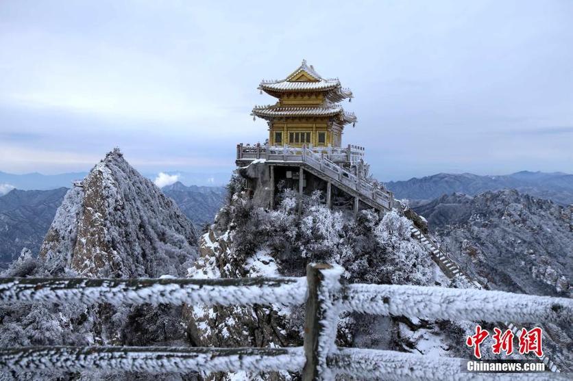 河南老君山降雪 两千米绝壁道观一夜白头美似画卷[组图]