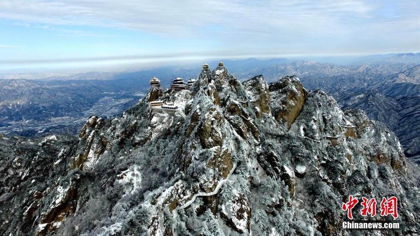 河南老君山降雪 两千米绝壁道观一夜白头美似画卷[组图]