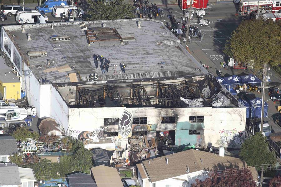 12月4日,在美国奥克兰,工作人员在失火现场调查。