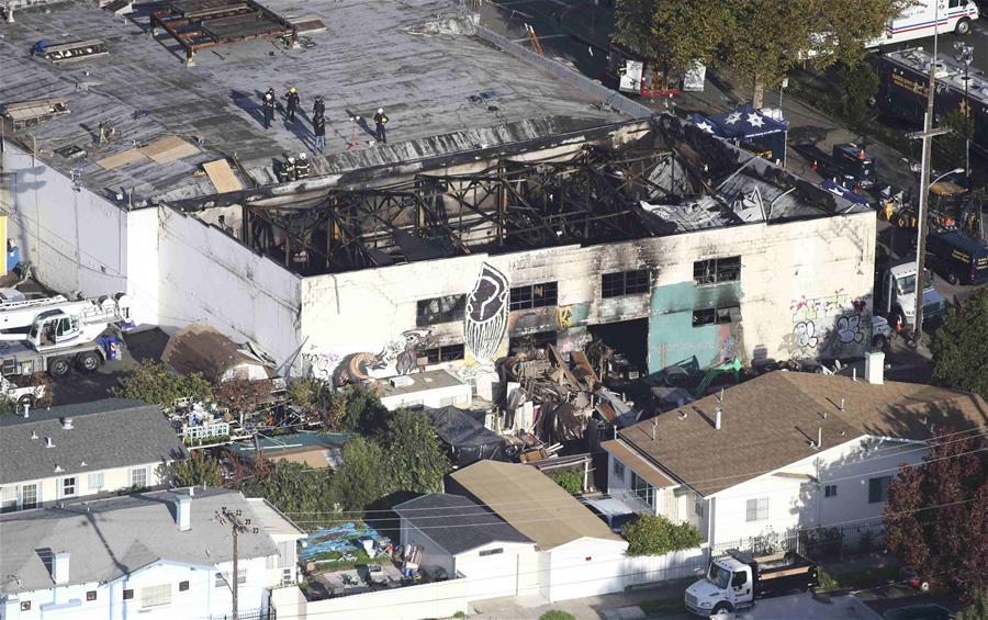 12月4日,在美国奥克兰,工作人员在失火现场调查。