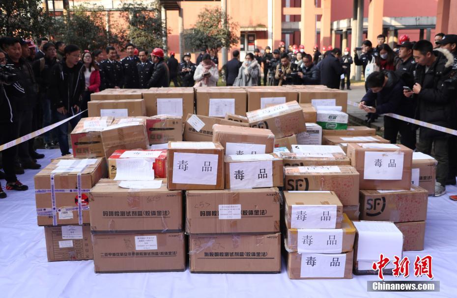 12月16日,浙江省公安厅在杭州市富阳区将浙江省各级公安机关在近四年的缉毒斗争中缴获的部分毒品共计1.042吨公开进行销毁。中新社记者王刚 摄