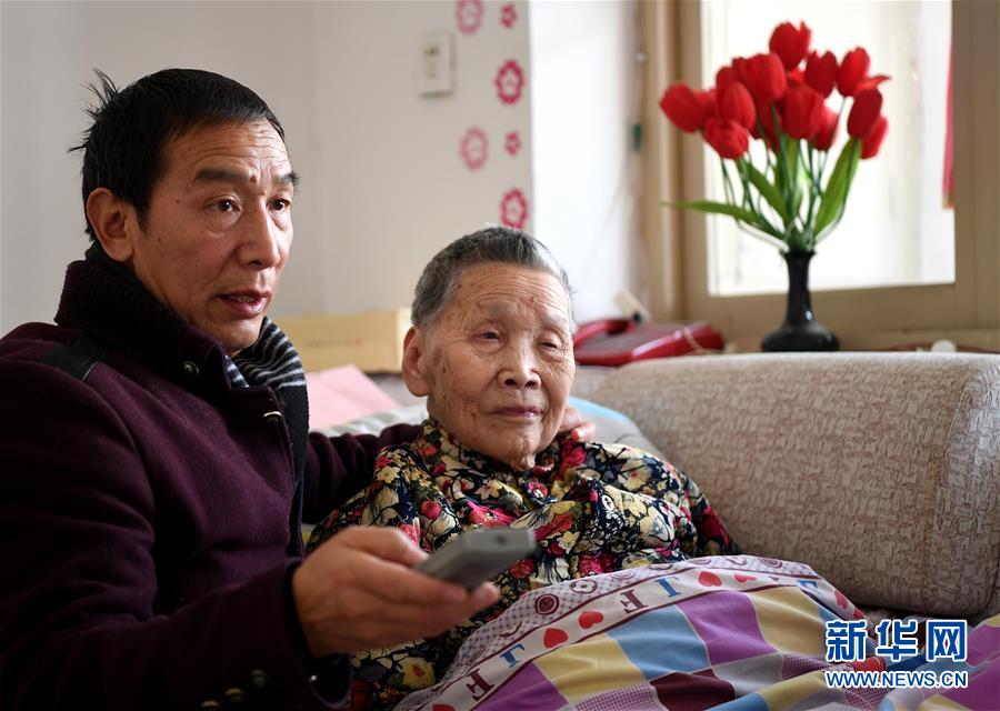 陈永清在家里陪母亲看电视(12月25日摄)。新华社记者 陶明 摄