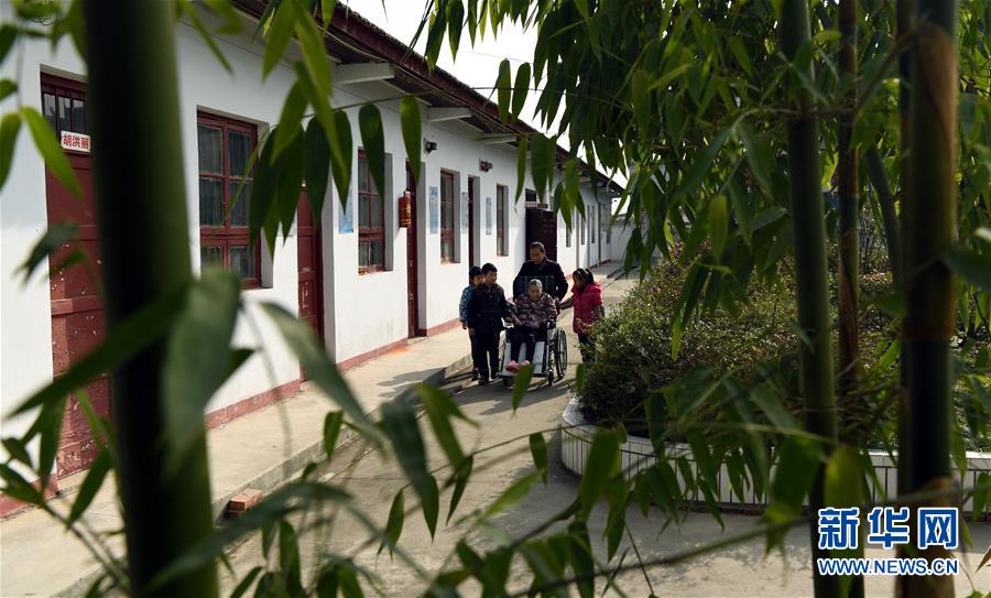 在孩子们的陪伴下,陈永清的母亲在校园里看风景(12月26日摄)。新华社记者 陶明 摄