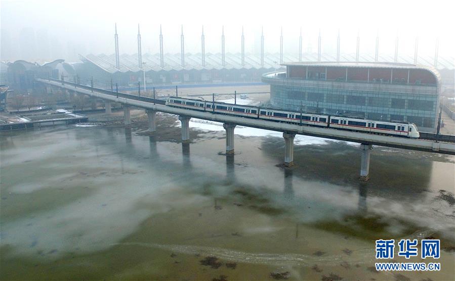 一辆列车驶出津滨轻轨会展中心站(12月31日摄)。 12月31日,在天津港“8·12”特大火灾爆炸事故中停运的津滨轻轨全线恢复运营。新华社记者岳月伟摄