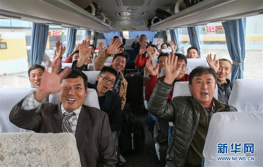 1月15日,在上海浦东国际机场,华越建筑责任有限公司员工坐上从上海开往南通老家的大巴车。