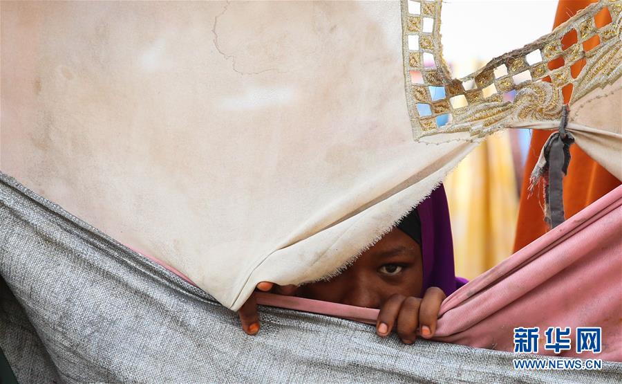 这是2月12日在索马里首都摩加迪沙的米桑难民营拍摄的一名女孩。新华社记者 潘思危 摄