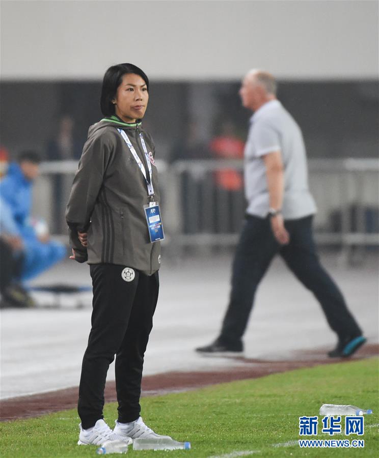2月22日,香港东方队主教练陈婉婷在场边观战。当日,在2017年亚冠联赛小组赛G组第一轮比赛中,中国广州恒大队主场以7比0战胜中国香港东方队。新华社记者刘大伟摄