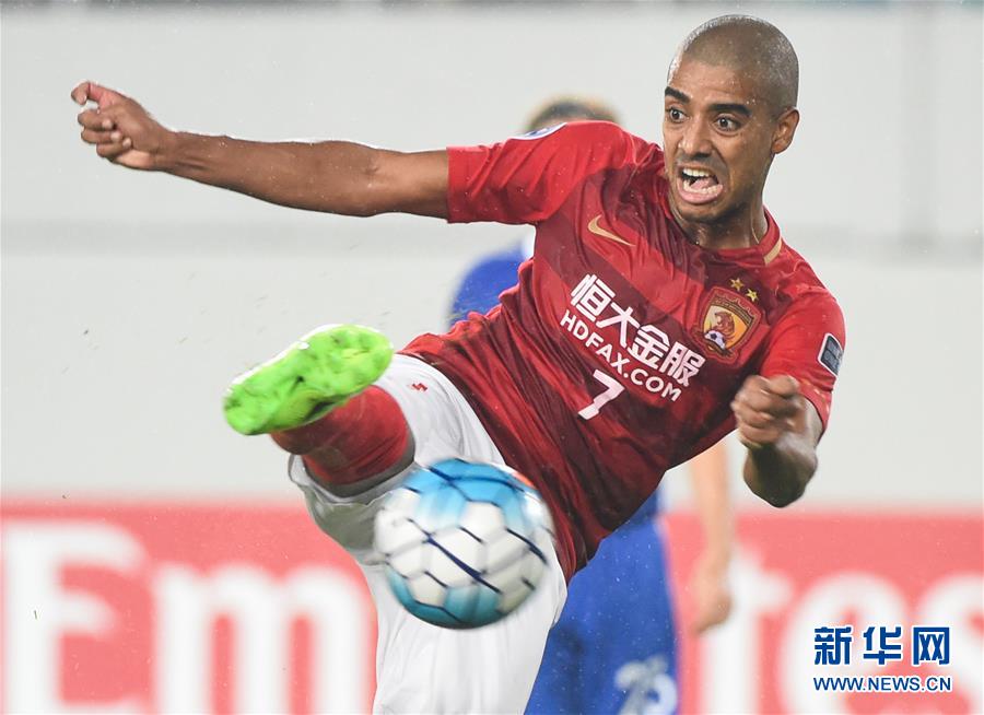 2月22日,广州恒大队球员阿兰在比赛中射门。当日,在2017年亚冠联赛小组赛G组第一轮比赛中,中国广州恒大队主场以7比0战胜中国香港东方队。新华社记者刘大伟摄