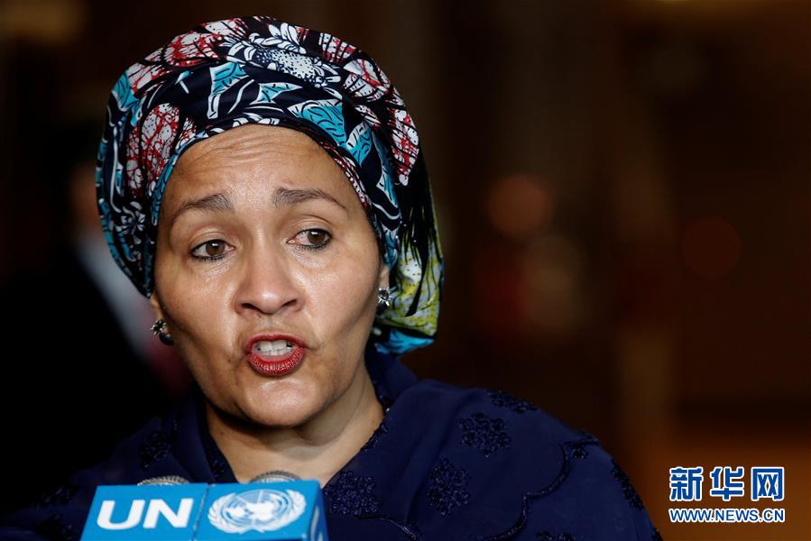 2月28日,在纽约联合国总部,联合国常务副秘书长阿明娜·穆罕默德在宣誓就职后出席记者会。联合国常务副秘书长阿明娜·穆罕默德28日在纽约联合国总部宣誓就职,她承诺将在可持续发展、性别平等、青年问题等各方面支持秘书长工作。新华社/路透