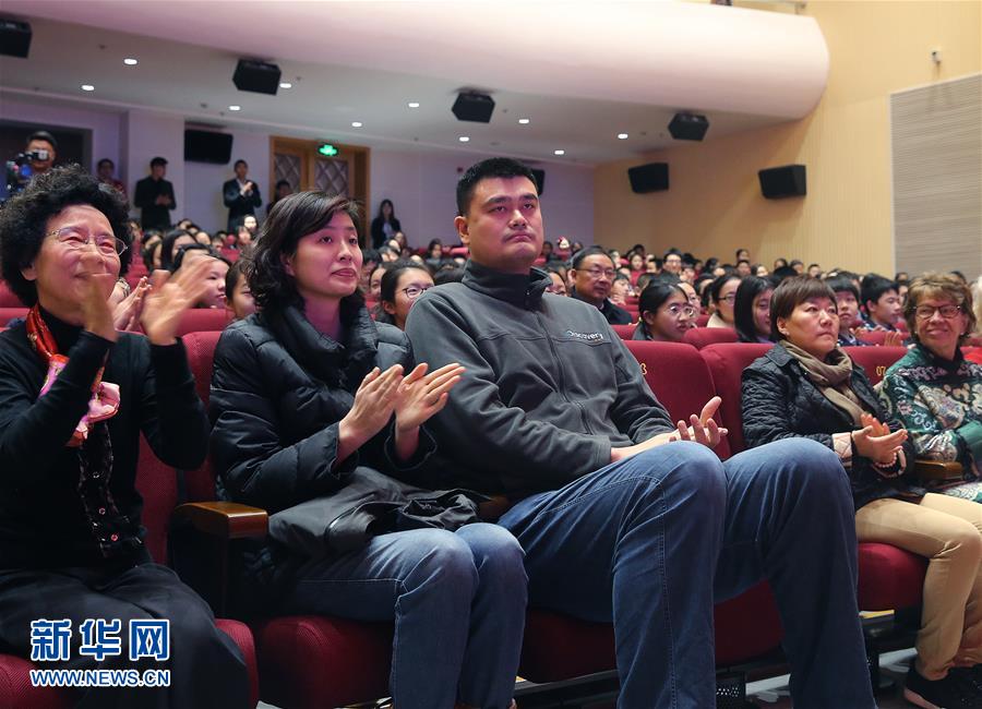 3月1日,姚明(前排左三)与妻子叶莉(前排左二)在启动仪式上。当日,中国篮协主席姚明和中国福利会副主席、党组书记兼秘书长赵丹妮在上海宋庆龄学校共同为宋庆龄讲坛揭幕。作为宋庆龄讲坛首讲嘉宾,姚明与宋庆龄学校千名师生交流互动,并做《兴趣是最好的老师》演讲。新华社记者陈飞摄