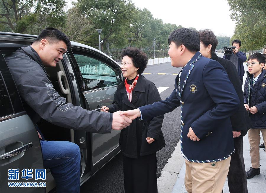 3月1日,姚明(左)在上海宋庆龄学校参加活动后和师生们告别。当日,中国篮协主席姚明和中国福利会副主席、党组书记兼秘书长赵丹妮在上海宋庆龄学校共同为宋庆龄讲坛揭幕。作为宋庆龄讲坛首讲嘉宾,姚明与宋庆龄学校千名师生交流互动,并做《兴趣是最好的老师》演讲。新华社记者陈飞摄