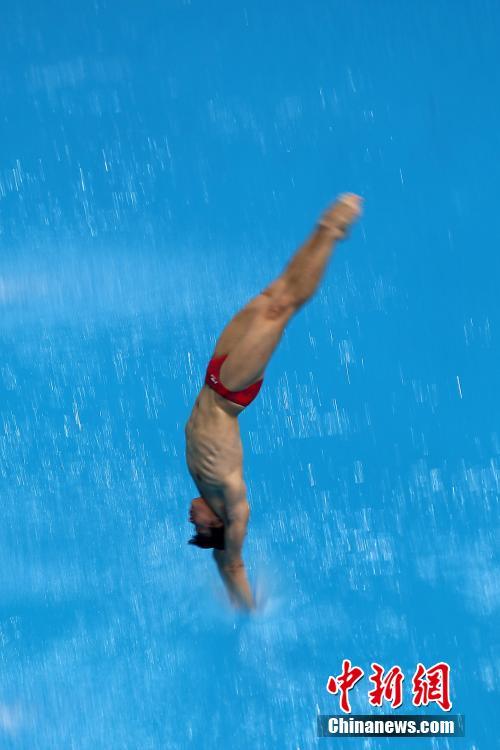 3月4日,中国选手曹缘在比赛中。当日,国际泳联世界跳水系列赛北京站进入第二个比赛日,男子3米板金牌被里约奥运会该项亚军、22岁的英国选手拉夫尔摘得,中国新秀谢思埸摘得银牌,奥运冠军曹缘仅得铜牌。中新社记者 韩海丹 摄