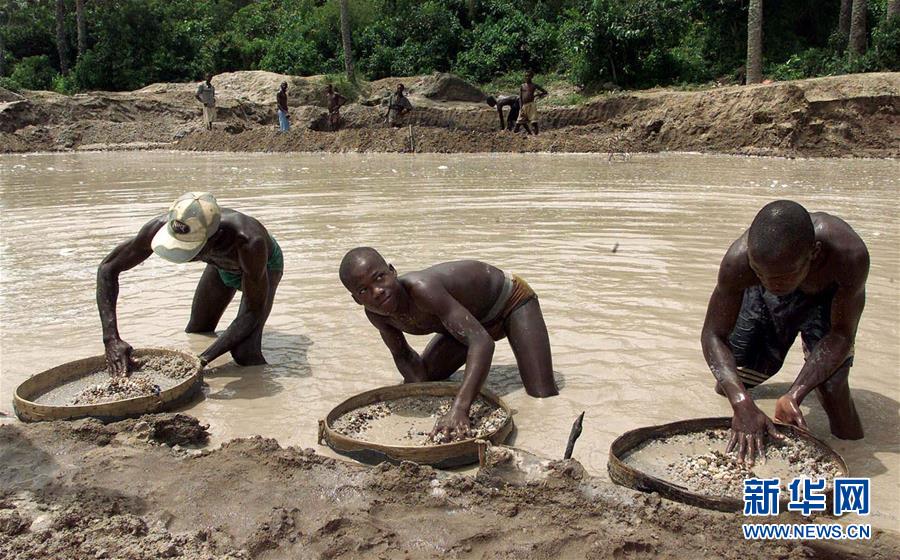 3月16日,塞拉利昂总统办公室新闻发言人阿卜杜拉伊·贝雷泰向新华社记者确认,塞拉利昂东部省钻石产地科诺区开采出一颗重量超过700克拉的超大钻石。这是塞拉利昂45年来开采出的最大钻石。这张资料照片显示的是2000年5月24日,在塞拉利昂博城以东约40公里处,人们在水中筛寻钻石。新华社/美联