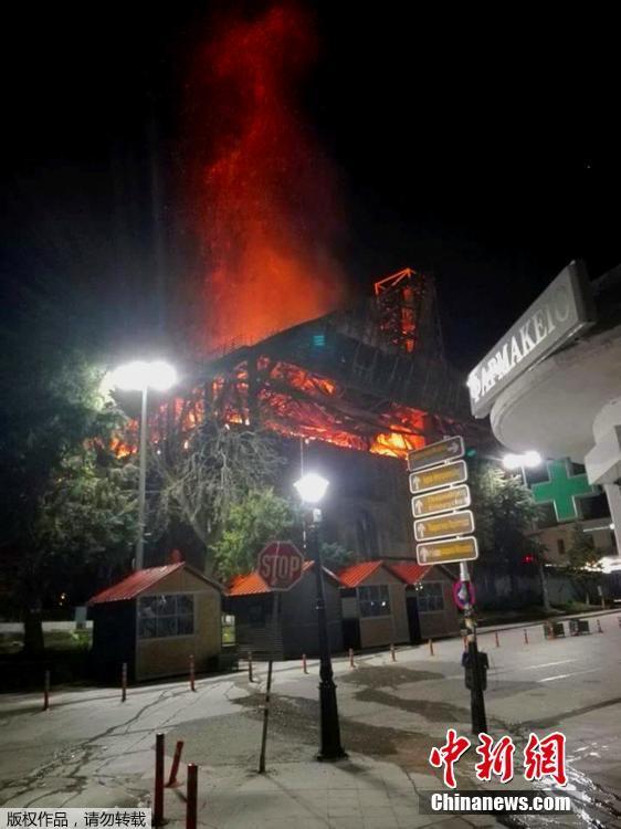 当地时间2017年3月22日,希腊Didymoteicho,15世纪的历史建筑奥斯曼帝国清真寺进行修复工作期间发生火灾。市长称清真寺华丽的木质屋顶遭受了严重损坏。
