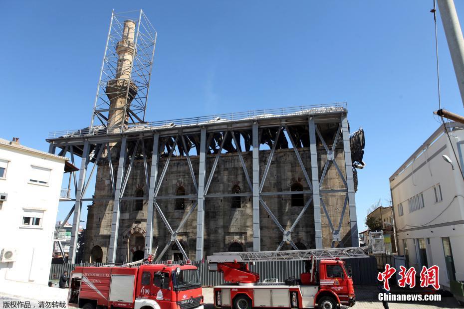 当地时间2017年3月22日,希腊Didymoteicho,15世纪的历史建筑奥斯曼帝国清真寺进行修复工作期间发生火灾。市长称清真寺华丽的木质屋顶遭受了严重损坏。
