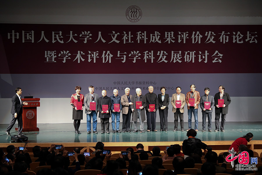 3月28日上午,中国人民大学人文社会科学学术成果评价发布论坛暨学术评价与学科发展研讨会于2017年3月28日在中国人民大学明德堂(如论讲堂)召开,2016年版重要转载来源作者学者上台领取证书。