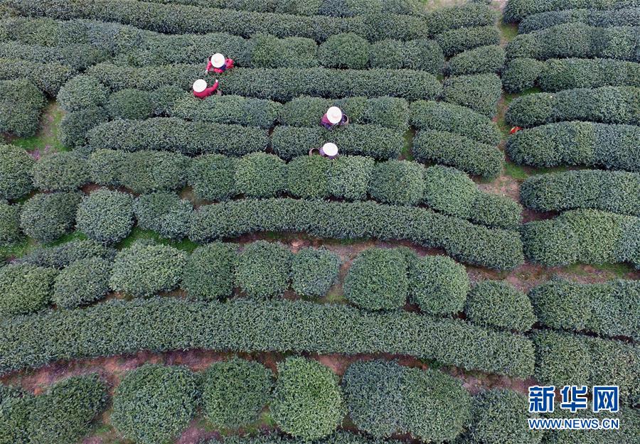 3月28日,采茶工在杭州梅家坞村的茶园里采茶。