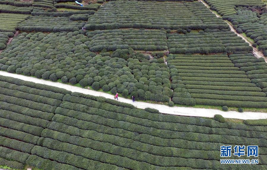 3月28日,采茶工走在杭州梅家坞村的茶田小道上。