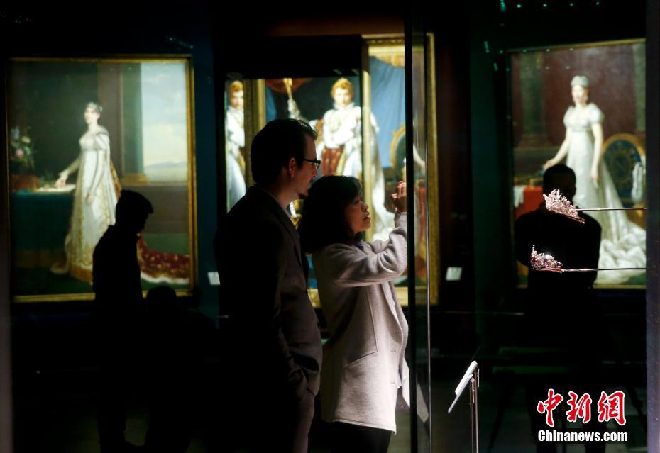 4月7日,北京,300余件中法艺术杰作亮相故宫博物院午门展厅。故宫博物院携手尚美巴黎CHAUMET,举办 “尚之以琼华——始于十八世纪的珍宝艺术展”,大量18世纪末至21世纪初的尚美巴黎珍宝、绘画以及各式艺术品将贯穿其中。重要的展品包括:拿破仑登基的 “加冕之剑”、为玛丽-露易丝皇后设计的麦穗钻冕,以及法国珠宝史上最具代表性的钻冕作品“波旁·帕尔玛” 金钟花钻冕等。法国卢浮宫博物馆、枫丹白露宫、英国国立维多利亚与艾伯特博物馆均提供了古典珠宝艺术珍藏,其中不乏部分首次走出法国、甚至首次公诸于世的艺术珍品。展览同时还展出了一系列故宫博物院的同类型藏品,作为展览亮点之一与展出的欧洲宫廷古典珠宝艺术品彼此呼应。展览将于4月10日开幕。中新社记者杜洋 摄