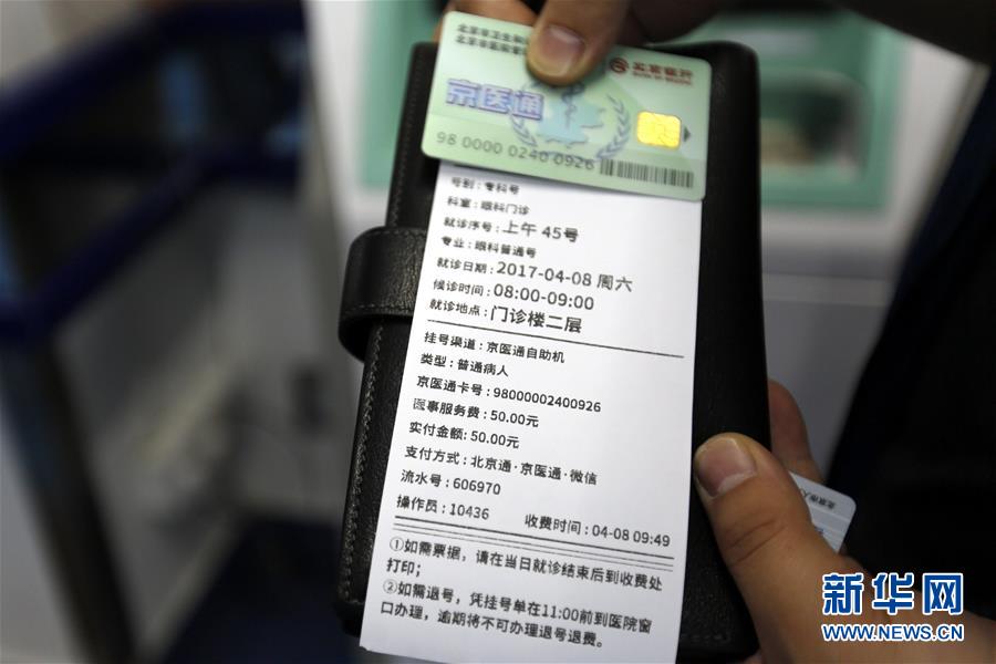 4月8日,一位患者在北京宣武医院展示门诊挂号单,上面的收费项目已改为“医事服务费”。 新华社记者 张玉薇 摄 图片来源:新华网