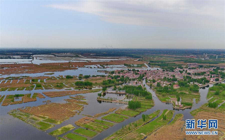 这是鸟瞰雄安新区安新县境内的白洋淀淀区的村庄(4月25日摄)。 新华社记者 王晓 摄
