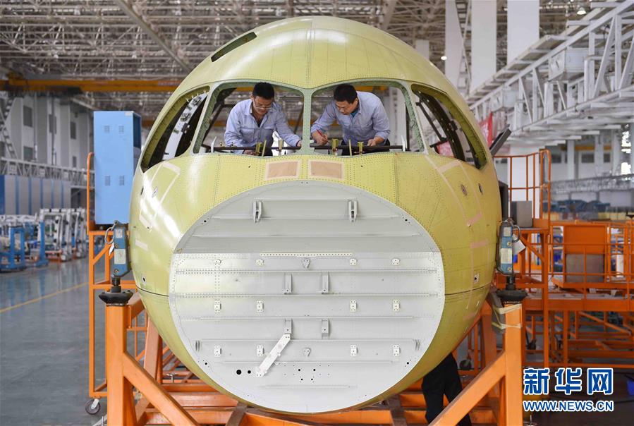 4月28日,工人在进行C919驾驶舱风挡装配操作。近日,记者来到位于成都市的中航成飞民用飞机有限责任公司C919国产大飞机机头生产线,实地探访C919国产大飞机机头生产过程。据悉,C919机头长约6.66米、宽3.96米,高4.13米,是C919的关键部位。中国商飞公司5月3日发布消息称,综合各方面因素,国产大型客机C919将于5月5日在上海浦东国际机场首飞。如天气条件不具备,则顺延。新华社记者刘坤 摄